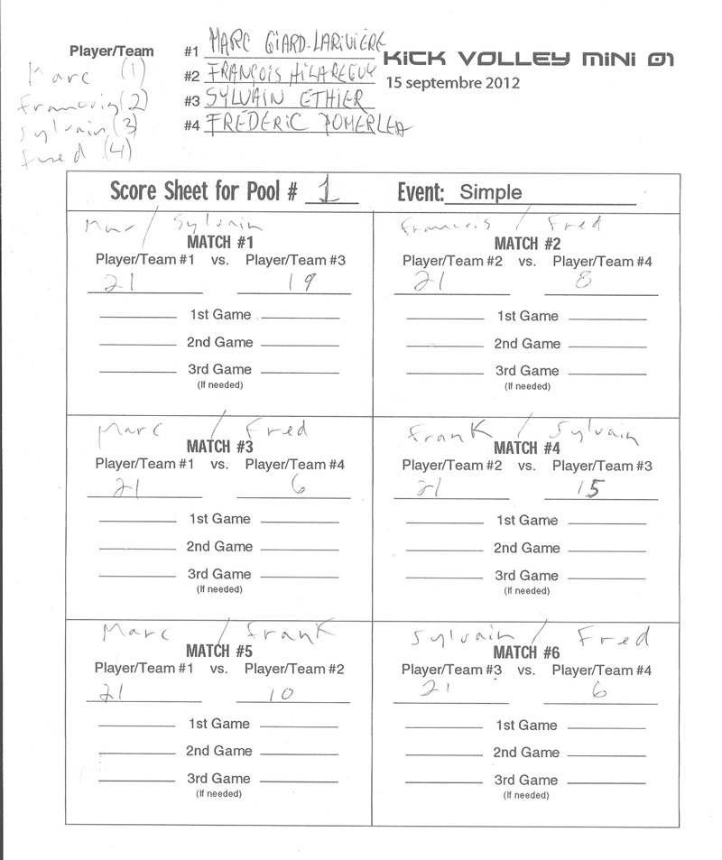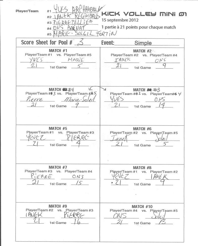 Kick Volley Mini 01 Results – Résultats