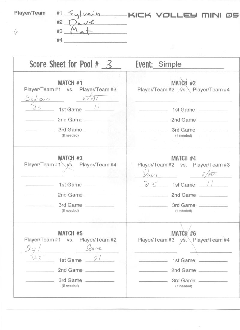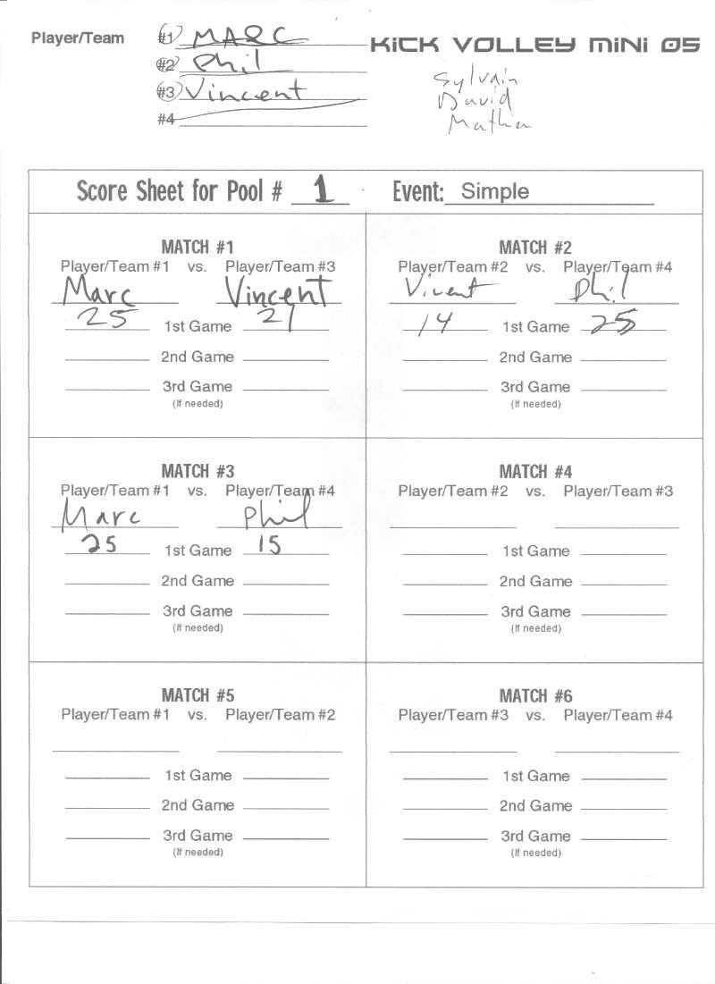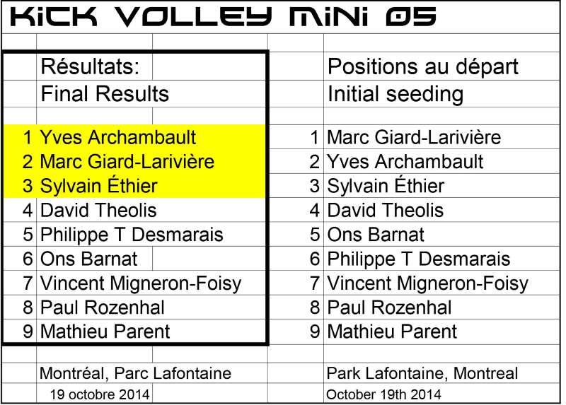 Kick Volley Mini 05 Results – Résultats