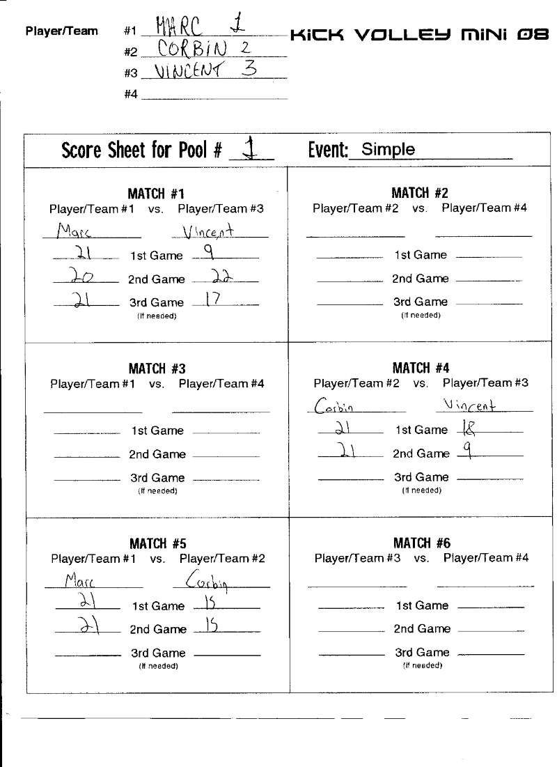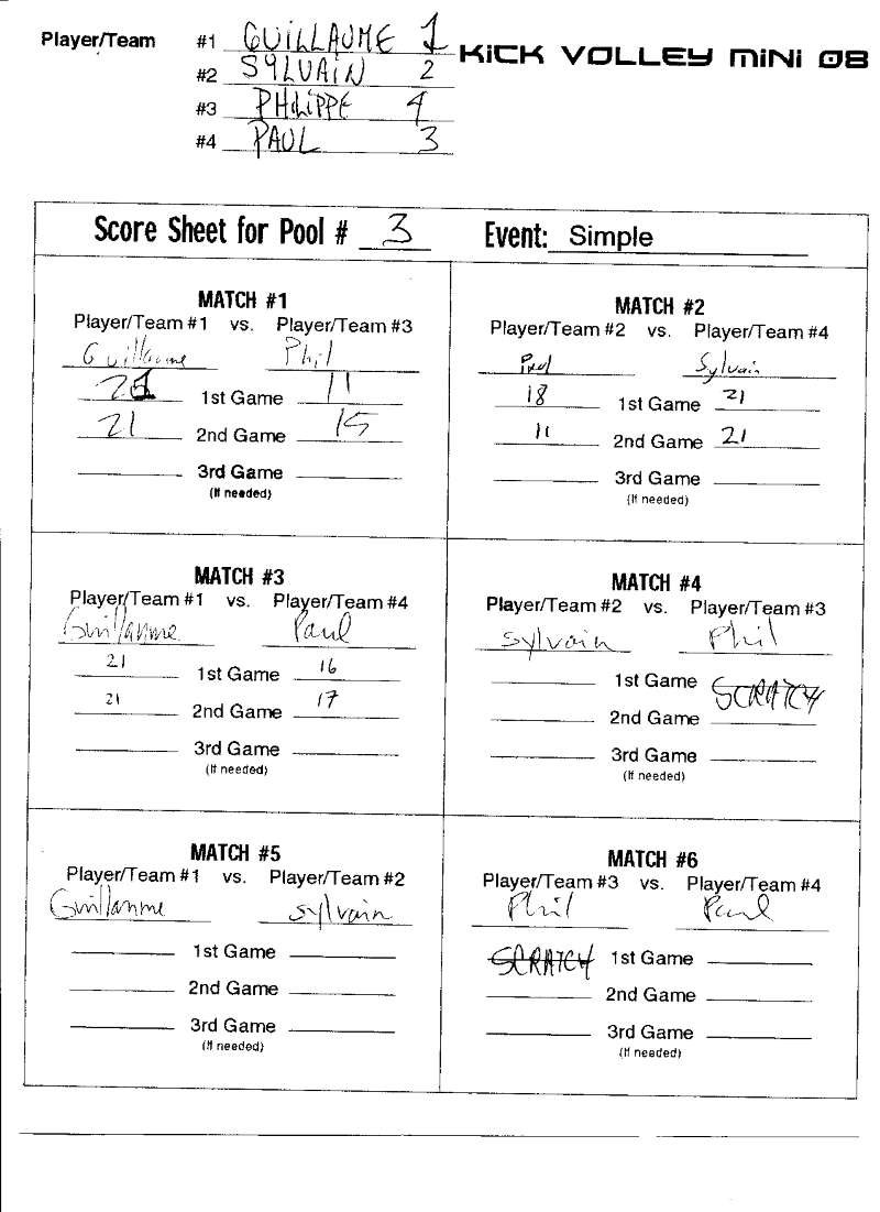 Kick Volley Mini 08 Results – Résultats